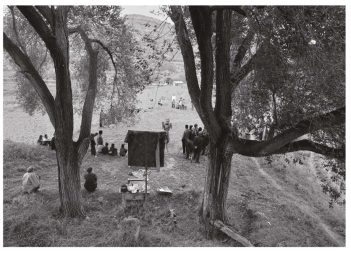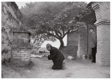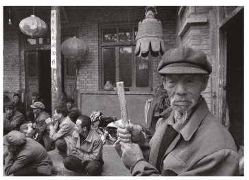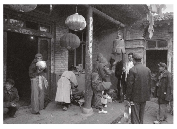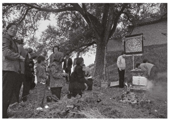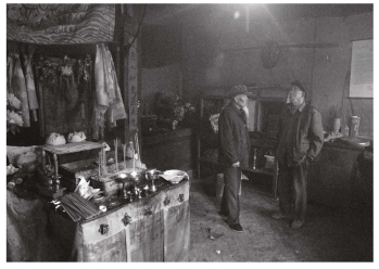 傩舞结束后,在村庙里听候会头调遣的男人。