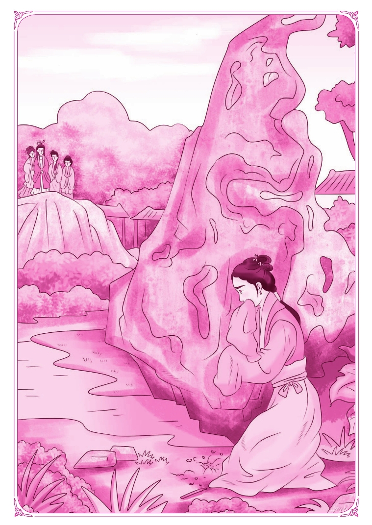 香菱听了,默默的回来,越性连房也不入,只在池边树下,或坐在山石上出神,或蹲在地下抠土,来往的人都诧异。李纨、宝钗、探春、宝玉等听得此信,都远远的站在山坡上瞧看她。只见她皱一回眉,又自己含笑一回。