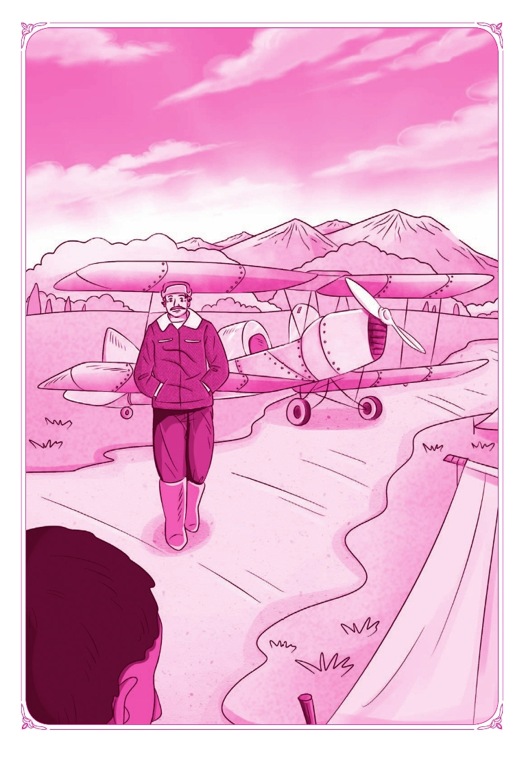飞机显得很小,接着飞了一大圈。两个男仆跑出来用汽油点燃了火,堆上野草,这样在平地两端就冒起了两股浓烟,晨风把浓烟吹向帐篷,飞机又绕了两圈,这次是低飞了,接着往下滑翔,拉平,平稳地着陆了。老康普顿穿着宽大的便裤,上身穿一件花呢夹克,头上戴着一顶棕色毡帽,朝着他走来。