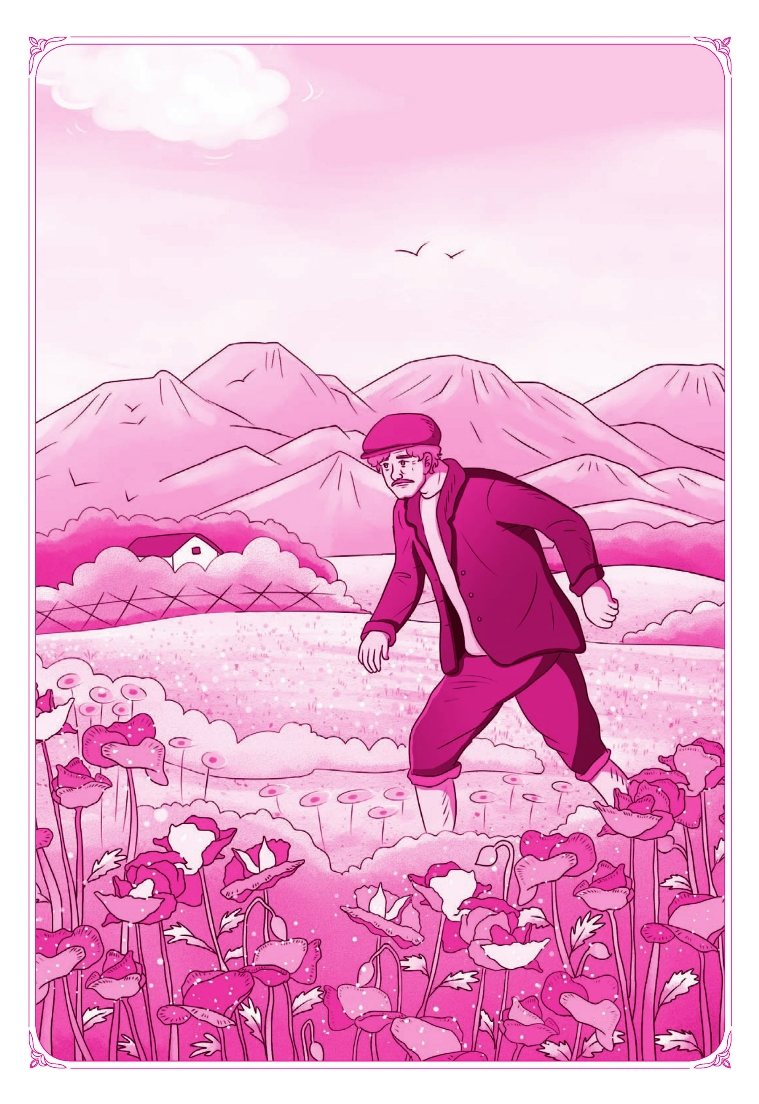 那年他们住在伐木人的屋子里,那口正方形的大瓷灶占了半间屋子,他们睡在装着山毛榉树叶的垫子上,这时那个逃兵跑进屋来,两只脚在雪地里冻得鲜血直流。他说宪兵就在后面紧紧追赶,于是他们给他穿上了羊毛袜子,并且缠住宪兵闲扯,直到雪花盖没了逃兵的足迹。