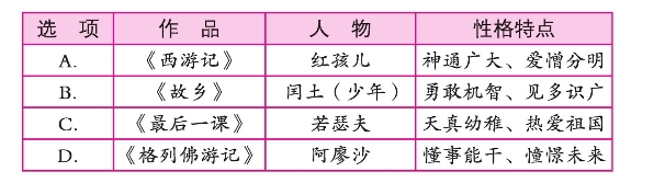 9.(浙江省金华市、丽水市)选出下列作品、人物、性格特点搭配正确的一项( )