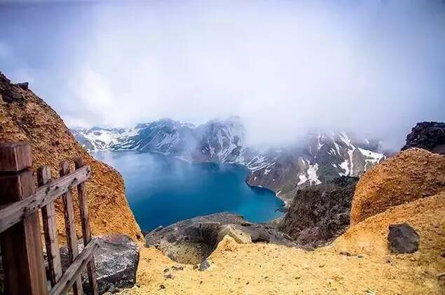 在周围十六座山峰的环抱中,沉静清澈的天池犹如一块碧玉一般,给人以神秘莫测之感。