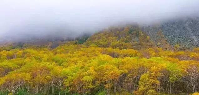 在迎风坡上,岳桦树干整齐地向着背风面倾斜,几乎匍匐在地,如艺术大师精心塑造。