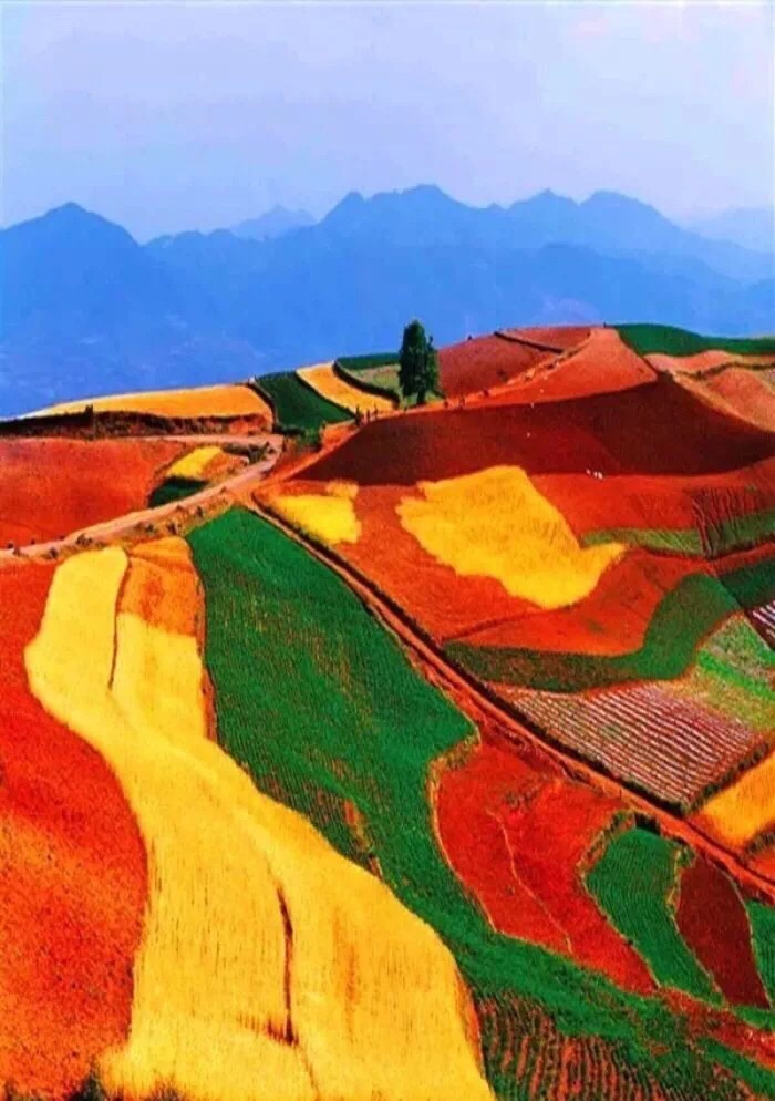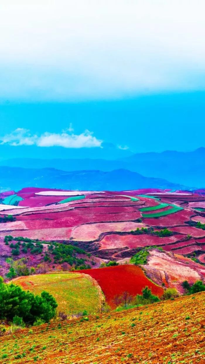 远远看去,五彩斑斓,衬以蓝天白云,更为壮观。