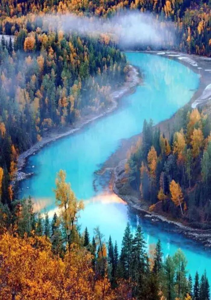 美丽的喀纳斯湖就像一面碧绿的镜子,