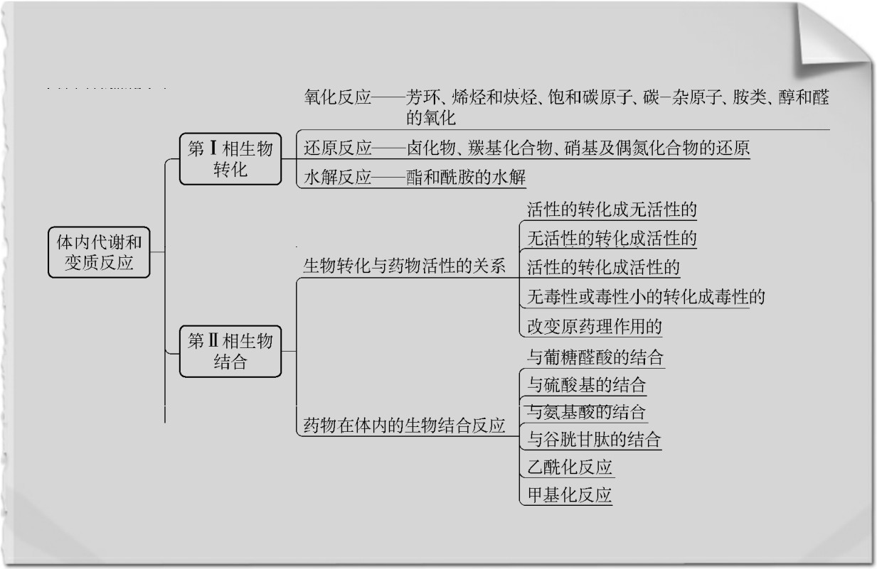 3.理解第Ⅰ相和第Ⅱ相生物转化反应的类型。
