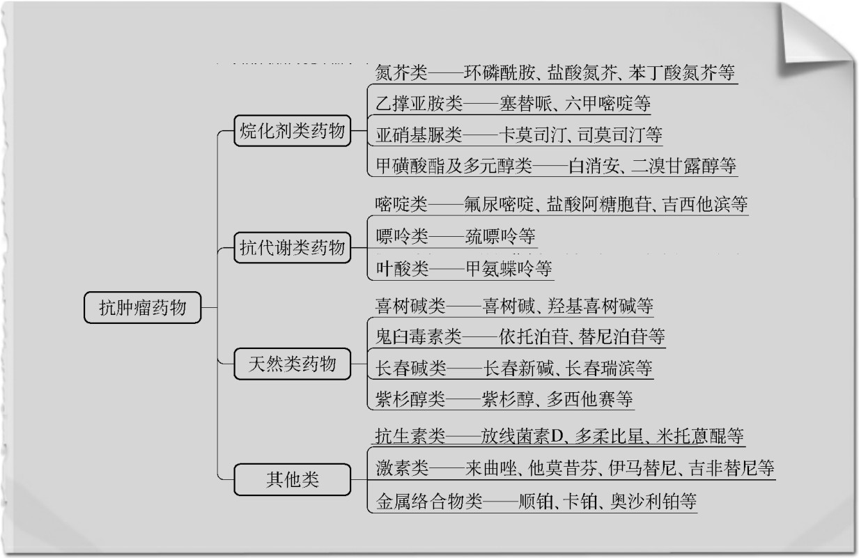 注:上述各类药物的学习内容包括此类药物的发展、分类、结构改造和构效关系及化学结构、结构特点、理化性质和临床应用等知识点。