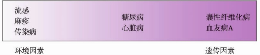 例如,烧伤、烫伤等外伤的发生与遗传因素无关,但这类疾病损伤的修复与个体的遗传类型可能有关。
