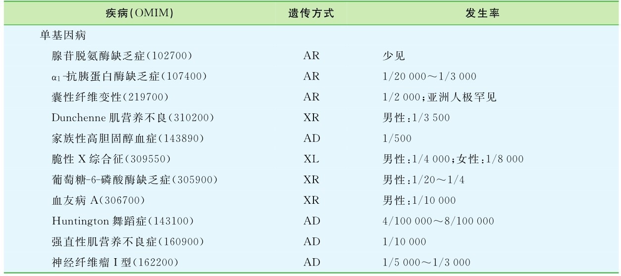 表1-2列举了一些常见遗传病的遗传方式及发生率。