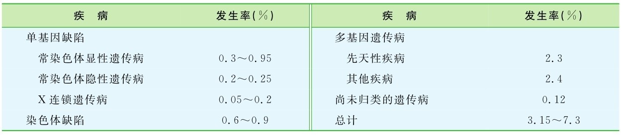 表1-4 遗传性疾病的群体发生率