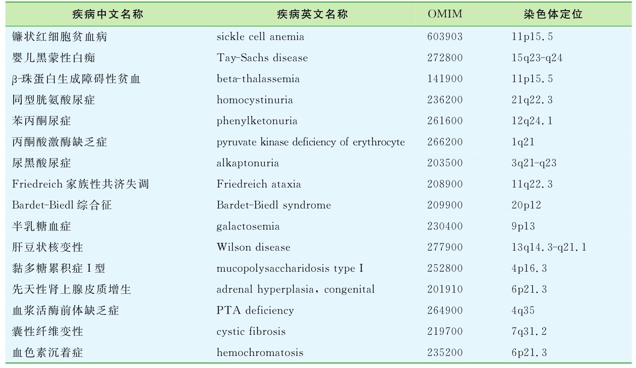 其他一些常见且主要的常染色体隐性遗传病见表4-2。