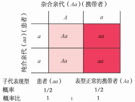 图4-7 常染色体隐性遗传病患者与杂合子婚配图解