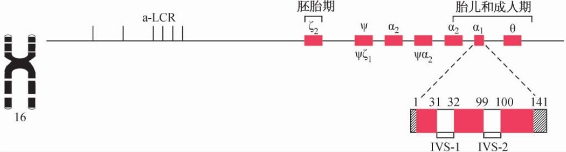 图5-2 类α珠蛋白基因簇和α珠蛋白基因的结构