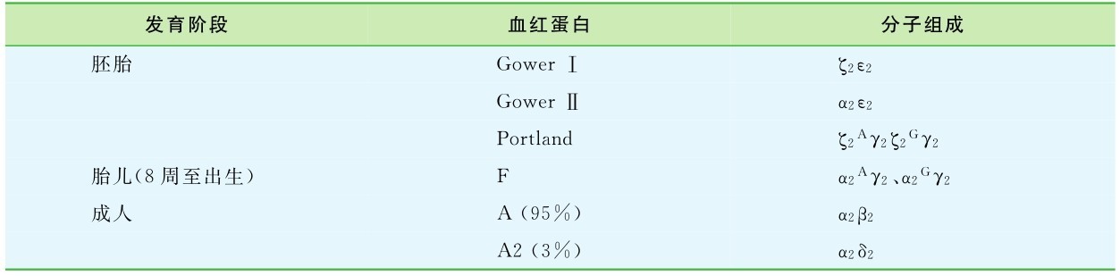 (一)血红蛋白分子的结构及在发育阶段时的变化