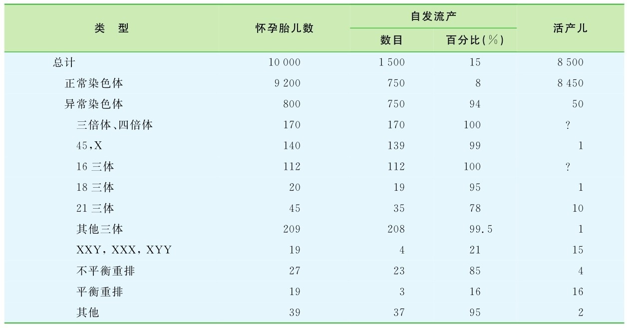 表12-4 10 000例怀孕胎儿的染色体结果(估算)
