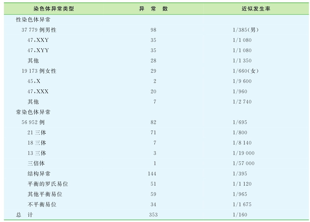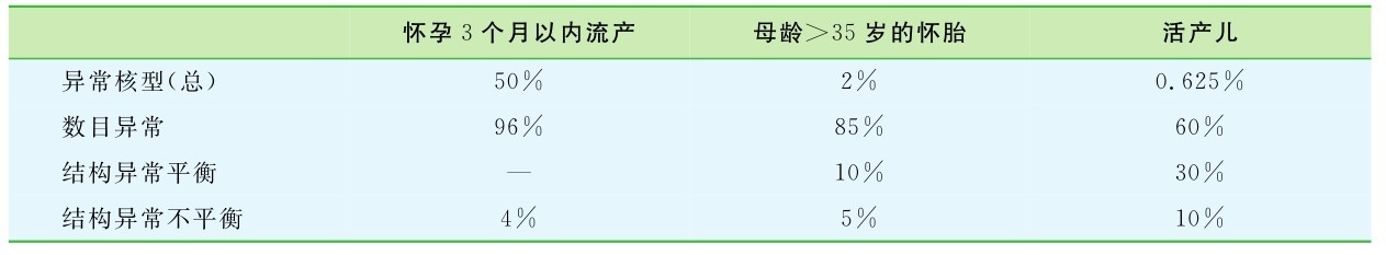 生育异常包括不育或不明原因的习惯性流产、死胎、畸胎、有先天异常儿病史的夫妇,其染色体异常频率为3%~6%。