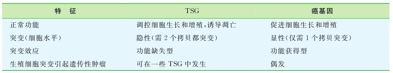 家族性视网膜母细胞瘤基因(RB1基因)是第1个被确定的TSG。这是一类控制细胞分裂、防止肿瘤形成的基因。TSG的作用特征是,经遗传的肿瘤抑制基因突变在个体水平是显性的(即杂合子可发展为肿瘤),但在细胞水平则往往是隐性的(即杂合子并不发展成肿瘤)。