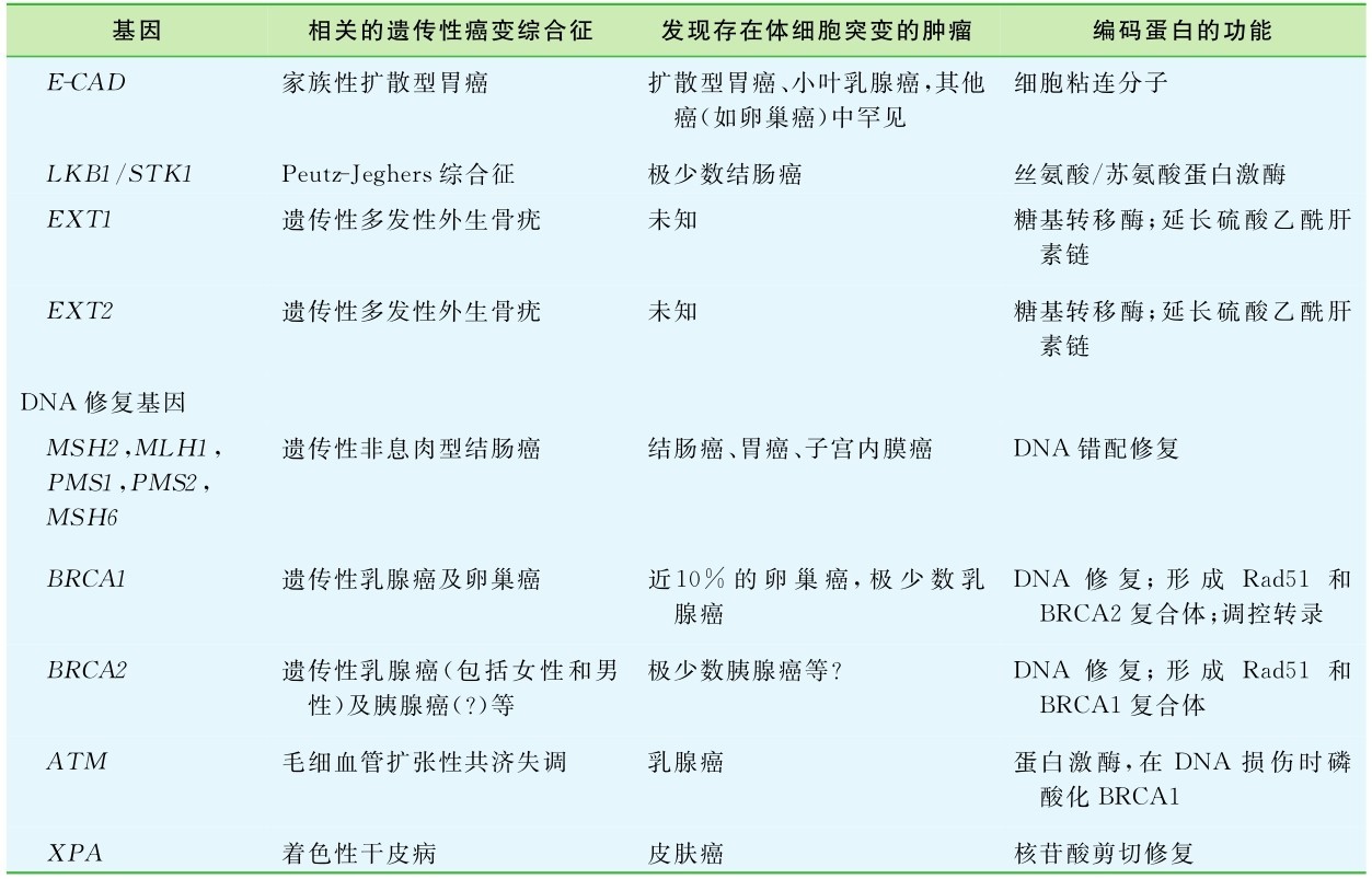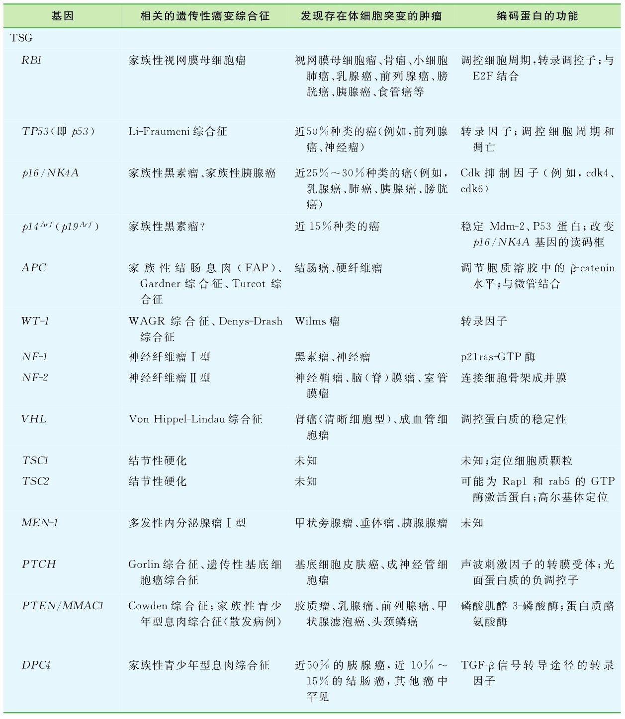 表13-1 TSG和DNA修复基因的功能及其相关的肿瘤
