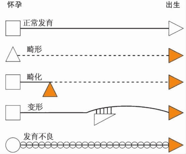 图14-1 形态发生过程导致出生缺陷的不同机制