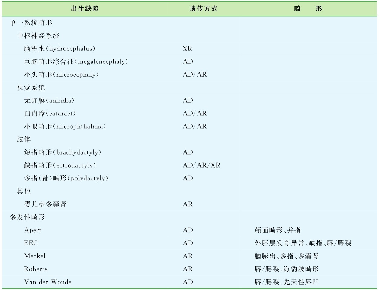 表14-4 常见出生缺陷的遗传方式