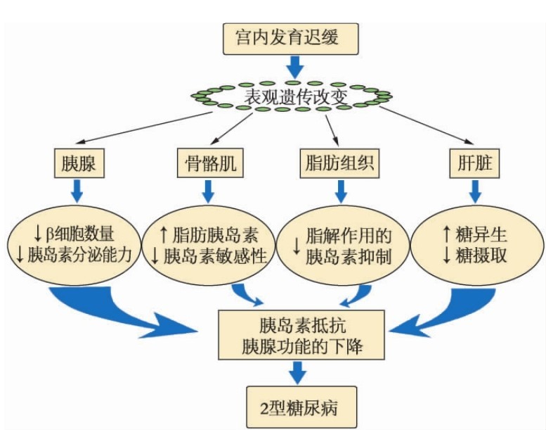 最近也发现除了成年后的生活方式导致糖尿病发生外,胎儿在子宫内的环境和早期出生后环境也对肥胖、胰岛素抵抗和糖尿病有显著影响。