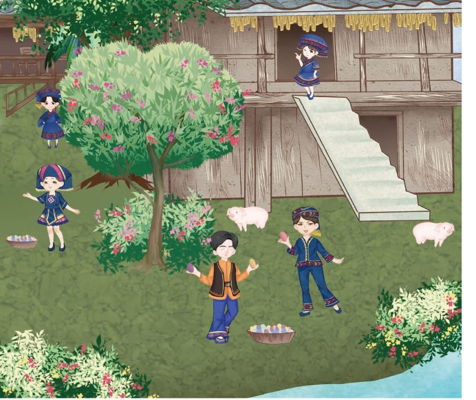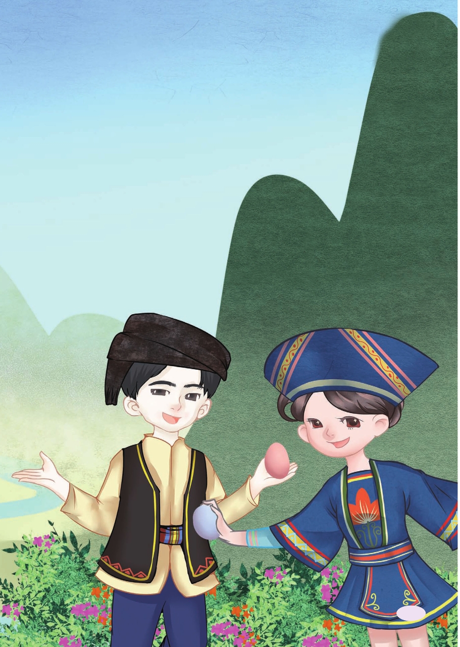 鸡蛋,自古以来就与壮族人民的生活有着密切的联系:他们祭祀占卜用鸡蛋,招魂除邪用鸡蛋,预测吉凶用鸡蛋,祝寿祈福用鸡蛋,治病就诊用鸡蛋,恋爱择偶要碰鸡蛋,出门远行要带鸡蛋,甚至小孩的“压岁钱”有时也是鸡蛋……可见,在壮族人民的生活中,鸡蛋占有重要的一席之地。彩蛋、红蛋以及素蛋,既是壮族原始卵崇拜的产物,又是壮族远古卵图腾——生殖崇拜的残留、延伸与象征。“碰蛋”是壮族男女交往中“传情达意”的吉祥物之一,也是壮族同胞生活节庆中“招待宾客,充饥果腹”的家常菜,兼备精神价值和生活价值“双重审美特性”。在碰蛋结亲的风俗中,蛋成了爱情的媒介和人们手中游戏娱乐的工具,给壮族同胞带来无限的趣味和欢乐。