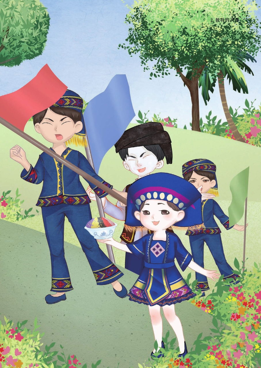 农历三月初三前几天,这里的集市热闹非凡,街上摆满了“三月三”各种祭祖用品,包括一些象征物、食品、供香等。上街购置并筹备祭祖用品是这个隆重节日的第一步准备工作。祭祖的祭品主要有两类:一类是祭祀的食物,主要有“三牲”、五色糯米饭、糍粑、鸡蛋、酒等。壮族民间的“三牲”指的是猪、鸡、鱼。在祭祀时,必须使用整只腌鸡、整条煎鱼以及一块猪肉条。稻作文化丰富的民族,拿亲自饲养的家禽鸡和猪作为祭品,既能表达对祖先的敬意,同时也是祈求祖先保佑六畜兴旺。五色糯米饭需要在三月初三的清晨,由家族里的妇女用红蓝草、黄饭花、枫叶、紫蕃藤等植物染料和糯米浸泡蒸制而成。她们会把糯米饭捏成一团一团,装在碗里捏成一个凸凸的小山丘模样,堆放在那里。除此之外,有些地方还需要一些壮族传统节日的特色食品,比如酸肉、米酒等。还有一些祭品是白色消费品,如鞭炮、香、冥币、锡箔做的元宝以及纸质器皿等纸祭品。纸祭品是各种祭祀活动不可缺少的。壮族人相信,只有保证祖先在另一个世界的生活美满富裕,他们才会保佑子孙后代生活平平安安。因此,他们为祖先准备的纸祭品越丰富,就越能显示出自己的诚心。