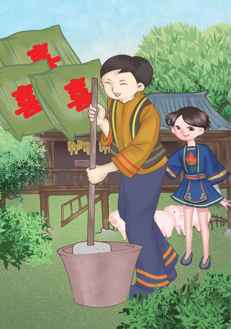 壮族农历三月初三那天,各家各户除了宰猪、杀鸡、杀鸭,还会制作一些传统美食,用来祭祀和食用。这些传统美食有五色糯米饭、糯米糍粑、粽子、五色蛋、菜包等,体现了壮族浓郁的稻作文化特色。