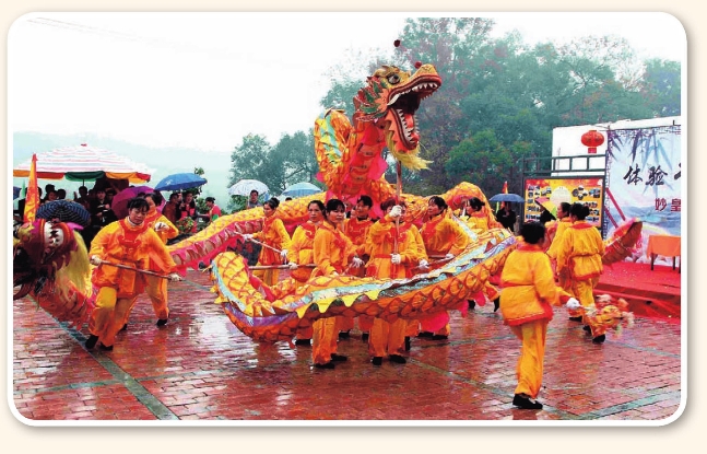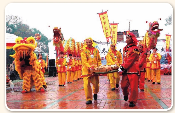 冬至当天上午,随着一阵喧天锣鼓声响起,龙狮起舞,拉开活动的序幕。第一项谢年大典,由村锣鼓队起鼓迎祭,呈供祭品,村主任诵读谢年祭文;第二项为添福增寿仪式,由村里的长寿老人在空心的福字里添笔画;第三项是民俗展演,由龙狮队、健美操队做精彩表演;第四项是饺子宴,村民们共享饺子,同喝迎接新年的美酒。