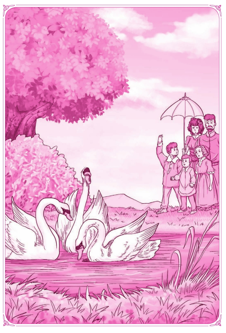 “我要飞向他们,飞向这些高贵的鸟儿!可是他们会把我弄死的,因为我是这样丑,居然敢接近他们。不过这没有什么关系!被他们杀死,要比被鸭子咬、被鸡群啄,被看管养鸡场的那个女佣人踢和在冬天受苦好得多!”于是他飞到水里,向这些美丽的天鹅游去:这些动物看到他,马上就竖起羽毛向他游来。“请你们弄死我吧!”这只可怜的动物说。他把头低低地垂到水上,只等待着死。但是他在这清澈的水上看到了什么呢?他看到了自己的倒影。但那不再是一只粗笨的、深灰色的、又丑又令人讨厌的鸭子,而是——一只天鹅!