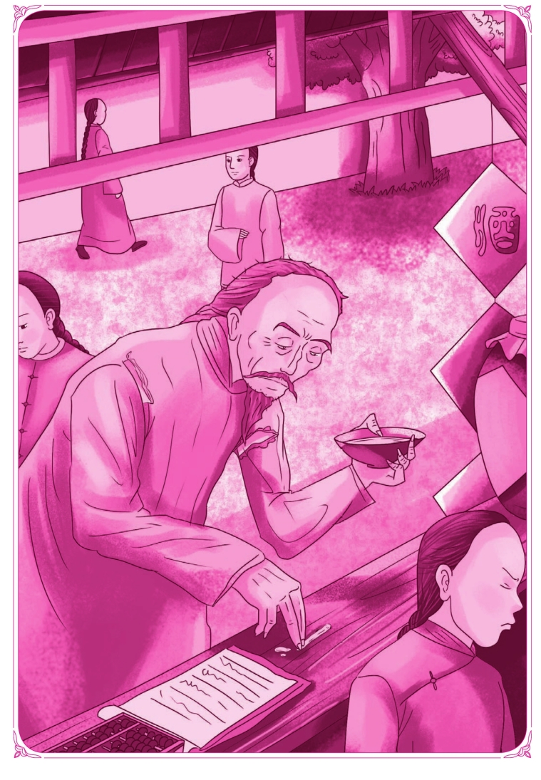 鲁镇的酒店的格局,是和别处不同的:都是当街一个曲尺形的大柜台,柜里面预备着热水,可以随时温酒。做工的人,傍午傍晚散了工,每每花四文铜钱,买一碗酒,——这是二十多年前的事,现在每碗要涨到十文,——靠柜外站着,热热的喝了休息;倘肯多花一文,便可以买一碟盐煮笋,或者茴香豆,做下酒物了,如果出到十几文,那就能买一样荤菜,但这些顾客,多是短衣帮,大抵没有这样阔绰。只有穿长衫的,才踱进店面隔壁的房子里,要酒要菜,慢慢地坐喝。