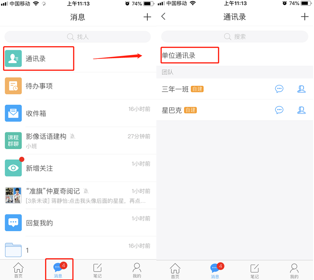 3、点击“通讯录“右上角“+“新建团队,可跨单位、跨部门添加成员。