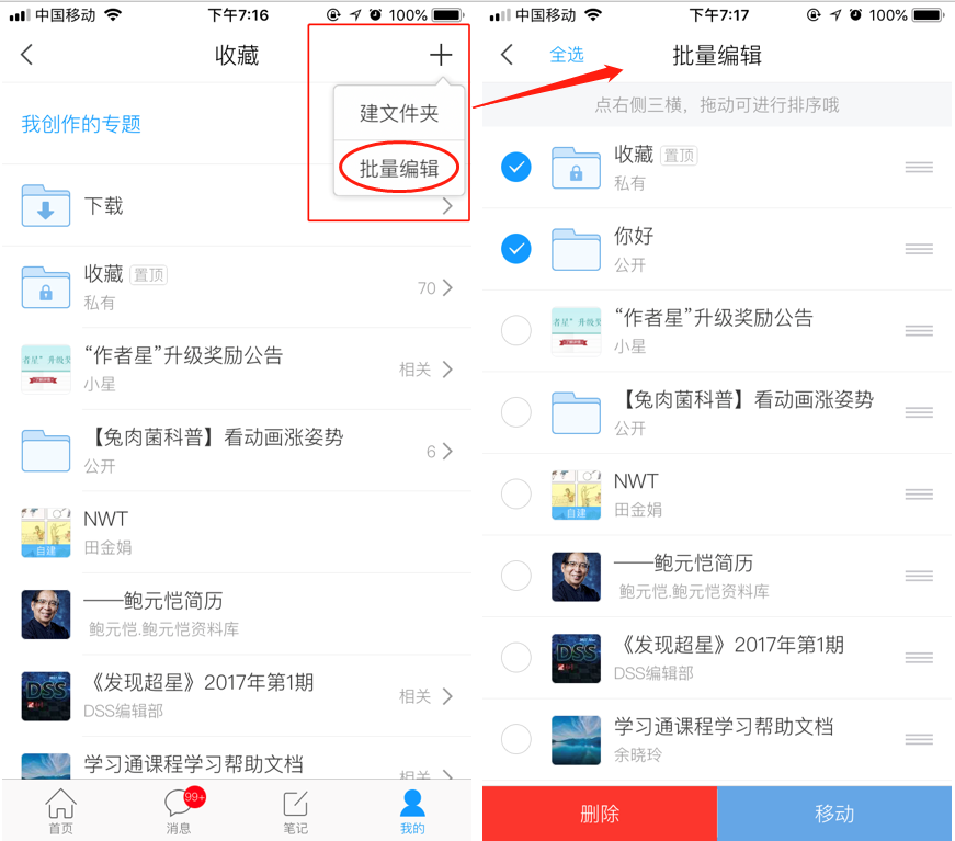 批量编辑。对自己的收藏列表进行管理。移动、删除、排序。