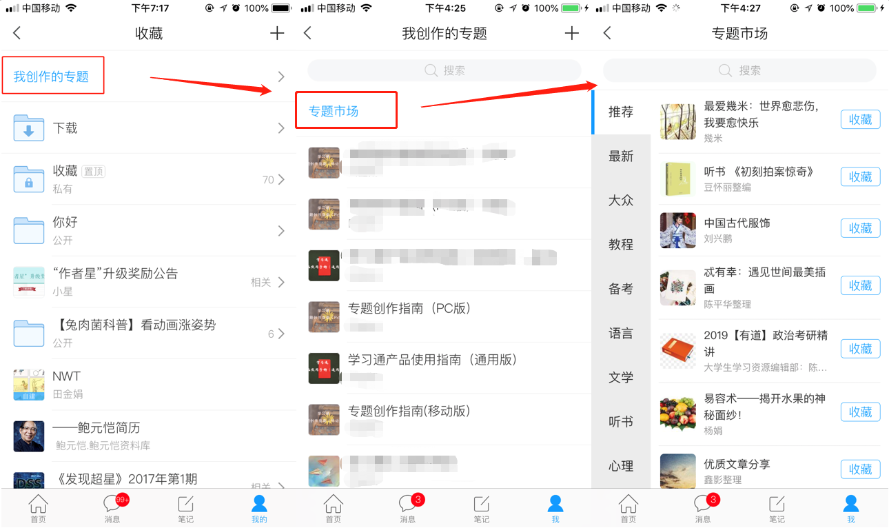点击我的专题列表左上方“专题市场”,一键切换到“专题市场列表”。