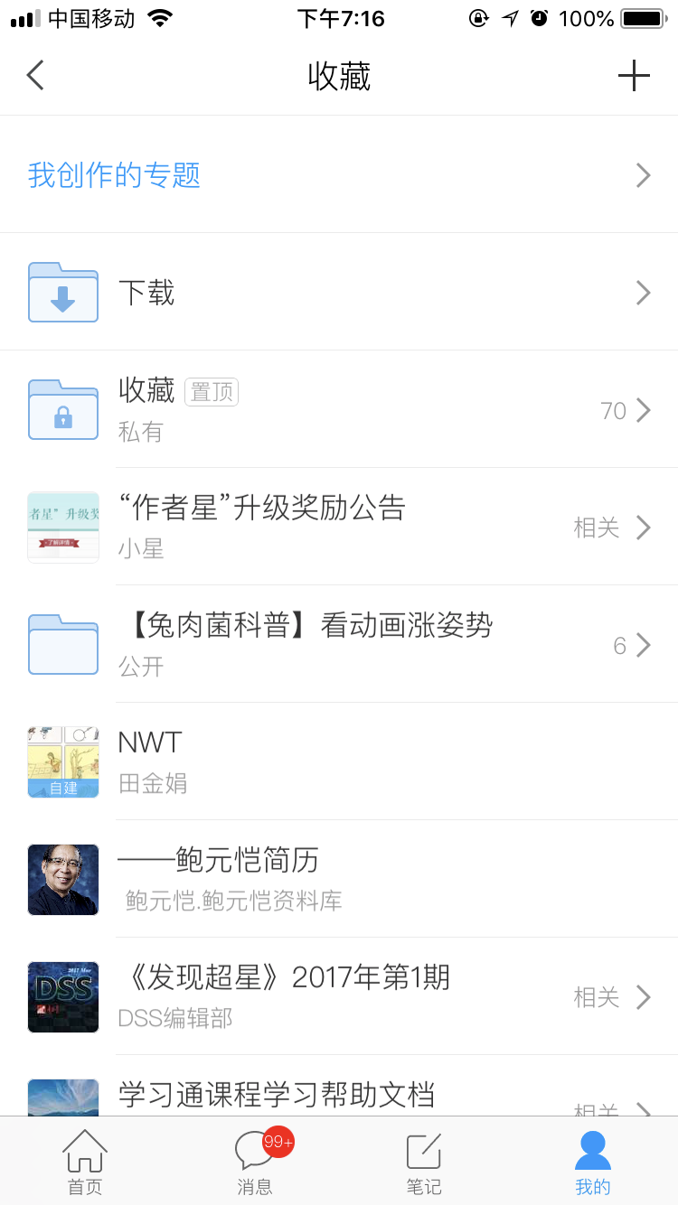 收藏列表。查找自己所有的收藏,笔记、专题、图书等都在这里。