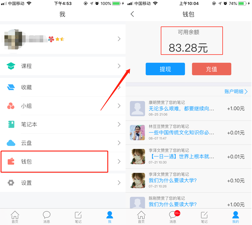 钱包显示用户在学习通中的金钱来往,提供了资金账户信息的查询与管理。