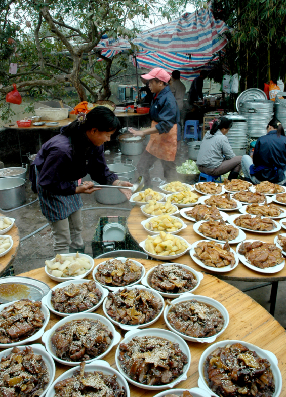1.“起厨”:举行婚礼的前两天,男女双方在家中门口搭起一个竹棚,架起炉灶,准备酒席,宴请宾客。