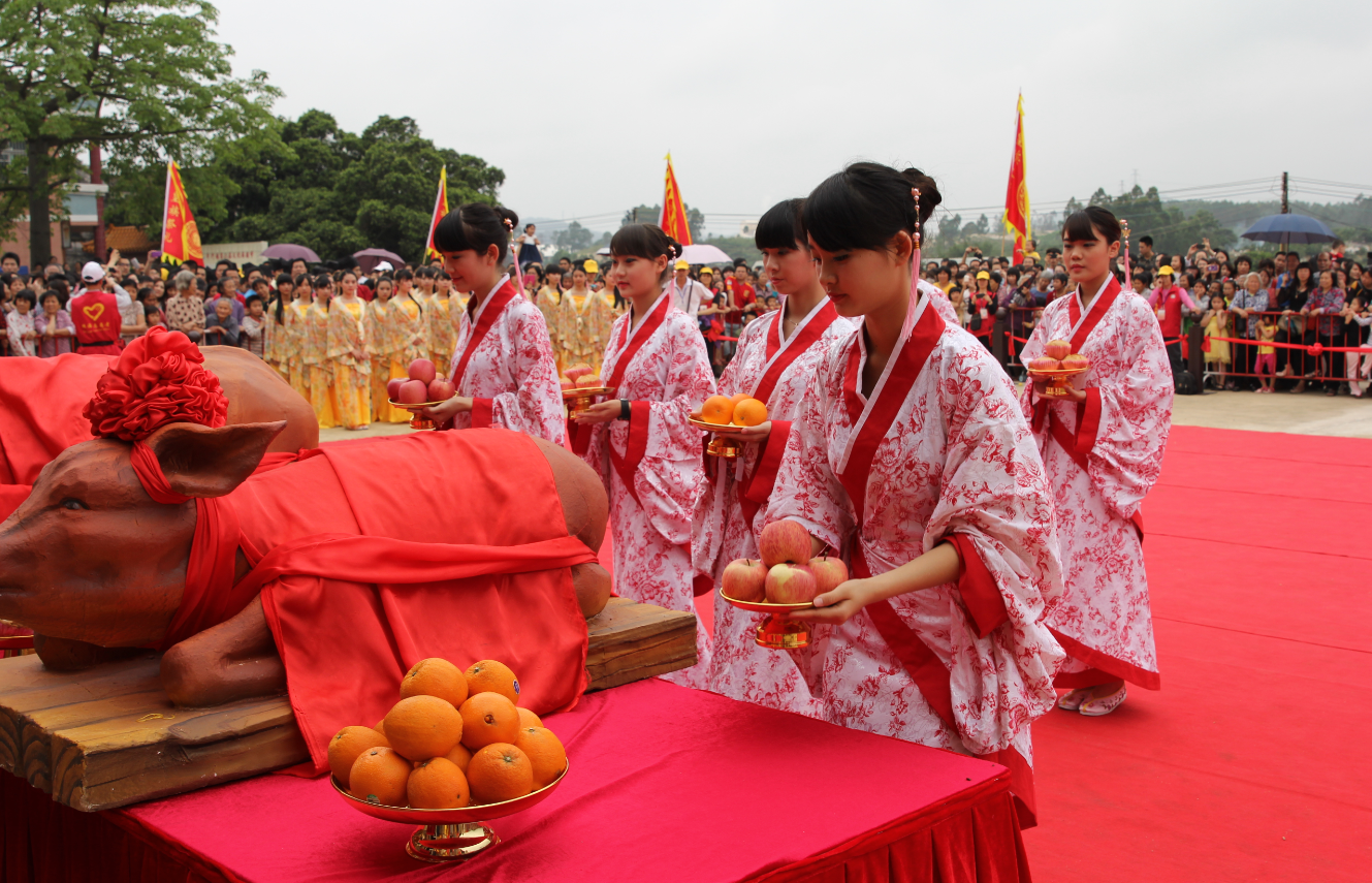 此刻,祠堂内外鞭炮齐鸣。场外持旗者摇旗欢呼,锣鼓柜乐队高奏欢快的乐曲,众多身穿汉服的男女青年翩翩起舞,场面热烈,尽显皇族气派。