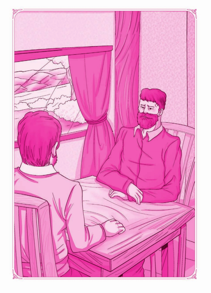 我们走进餐室,坐下了。当我们从客厅里走到这里来就座的时候,由于“享受”而眼睛发光、鼻子微红的费多尔·米海奇唱着歌:《胜利的雷声响起来》。他们替他在屋角里一张没有桌布的小桌子上备着单独的餐具。这可怜的老头儿不能保持清洁,因此他们经常让他跟大家保持一段距离。他划了十字,叹一口气,然后像鲨鱼一般吃起来了。饭菜的确不坏,因为是礼拜天,当然少不了颤抖的果冻和“西班牙风[13]’,。在席上,曾经在陆军步兵团里服务了十年光景而又到过土耳其的拉其洛夫就打开了话匣子。我用心听他讲,同时偷看奥丽雅。她长得并不是很美,但是她脸上的果断而安详的表情,她的又阔又白的前额,浓密的头发,尤其是一双褐色的眼睛,不大,然而聪明、清朗而有生气,无论谁处在我当时的情况下,看了都要惊异的。她仿佛在留心倾听拉其洛夫的每一句话,她脸上所表示的不是关心,而是热情的关注。从年龄上看来,拉其洛夫可以做她的父亲,他称她“你”(俄国人对疏远的人称“您”,对亲近的人称“你”),但是我立刻猜测到她不是他的女儿。在谈话中,他说起了他的已经故世的妻子——“她的姐姐”,他指着奥丽雅这样说。她立刻脸红了,低下了眼睛。拉其洛夫停了一下,就变换了他的话头。老太太在吃饭的时候一句话也不说,她自己几乎不吃什么东西,也不劝我吃。她的面貌表现出一种胆怯而无希望的期待和一种令人伤心的、老年的哀愁。快散席的时候,费多尔·米海奇开始为主人们和客人“祝颂”了,但是拉其洛夫向我一看,叫他停止了。那老头儿用手在嘴唇上摸摸,眨眨眼睛,鞠一个躬,又坐下了,可是这回却坐在椅子的边上。吃过了饭,我和拉其洛夫来到他的书房里。