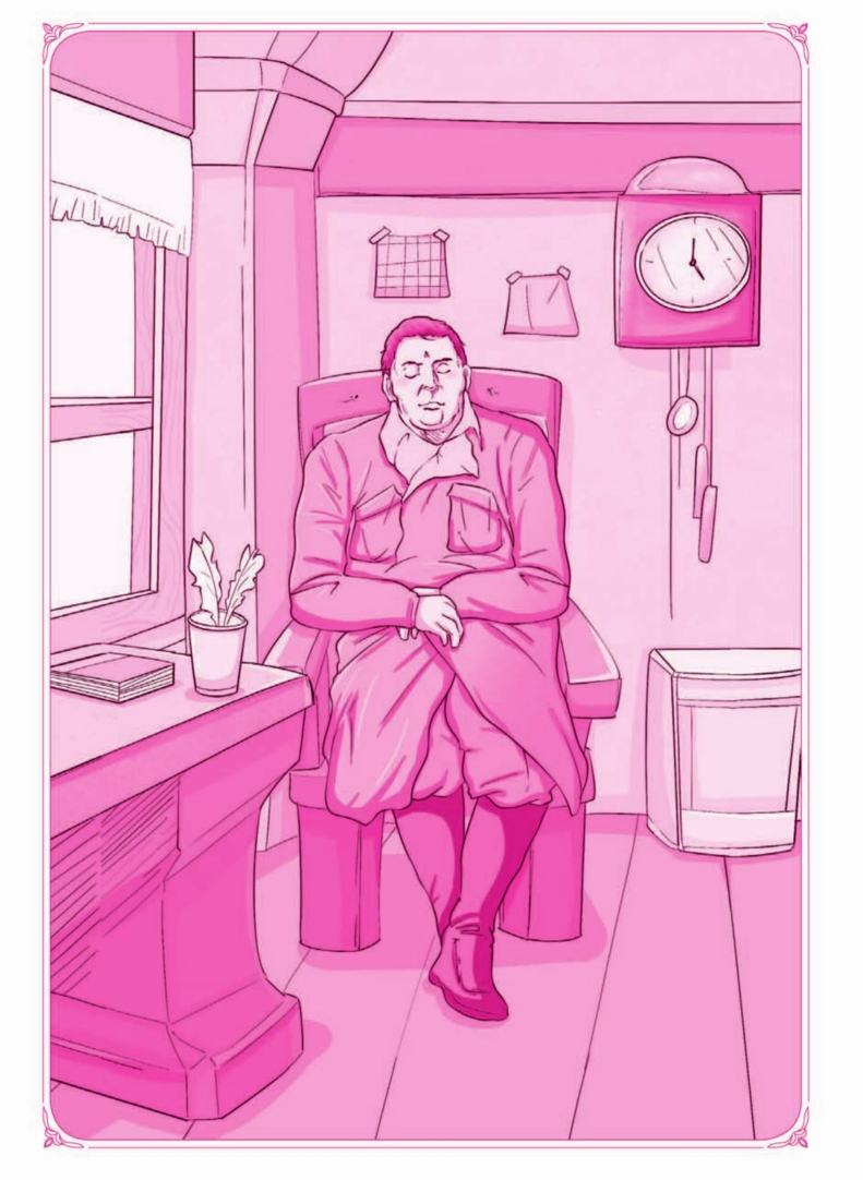胖子整理一下自己的头发,用那差不多全被大衣袖子遮盖了的手掩着嘴巴咳嗽一声,扣好纽扣,大踏步地到女主人那里去了。不一会儿,这一群人和库普略也一同跟着他出去了。留在这里的只有我那老相识的值班员。他刚开始削羽毛笔,就坐在那里睡着了。几只苍蝇立刻利用这幸运的机会,团团地围住了他的嘴巴。一只蚊子停在他的额上,准确地摆开了两只脚,慢慢地把它的刺全部插进他的柔软的肉里去。以前那个火红头发而有连鬓胡子的头又出现在门口,张望了一会儿,便带着它那很丑陋的身体走进事务所来。