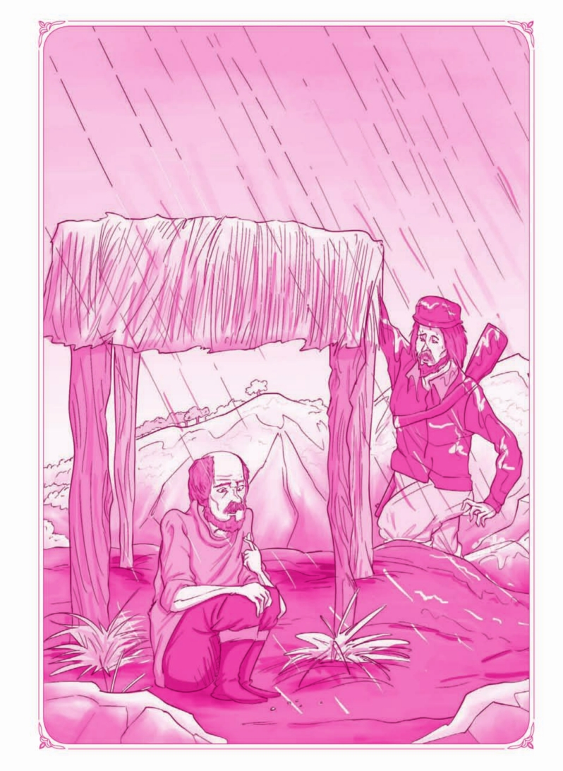 这是秋天的事。我背着枪在野外徘徊已有几小时了。库尔斯克大道上的旅店里有我的三套车在等候着我。非常细密而寒冷的雨从清早起就像老处女一般絮絮不休地、毫不顾惜地缠住我,无奈之下我不得不在附近找寻一个隐避处——即使是暂时的也好,要不是这样的话,我在傍晚以前恐怕不会回到旅店里去的。我正在考虑向哪一方向走,忽然豌豆田旁边一所低低的草棚映入了我的眼中。我走近这草棚去,向草檐底下一望,看见一个非常衰弱的老头儿,使我立刻想起了鲁滨孙在他的孤岛上某一个山洞里所发现的那只垂死的山羊。老头儿蹲在地上,眯着他那双晦暗的小眼睛,像兔子那样急促而又小心地(这可怜的人一颗牙齿也没有了)咀嚼着干燥坚硬的豌豆粒,不断地在嘴里把它移到这边,又移到那边。他是那么专注,竟没有注意我的到来。