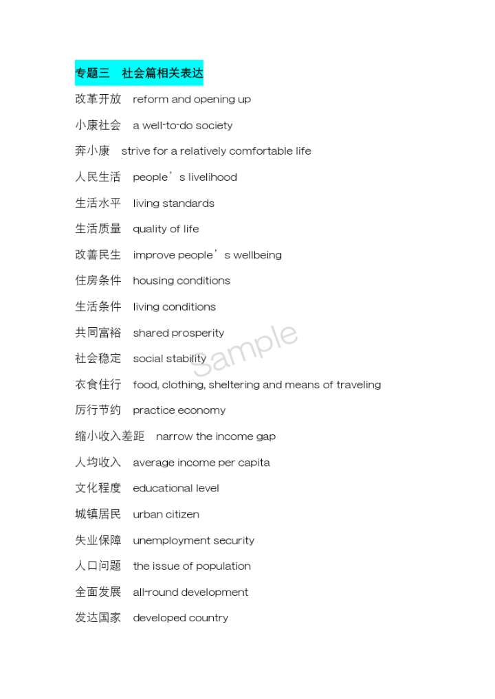 四六级翻译热点词