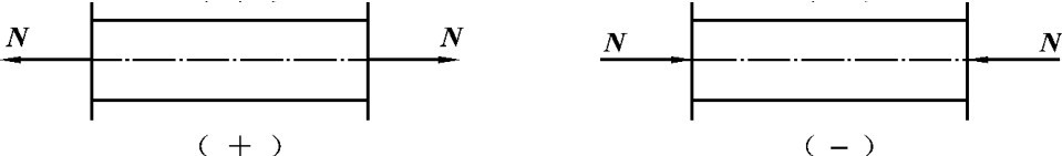 一般规定:如图1-7所示,轴力沿着截面法线方向向外,箭头背离截面的为正,称为拉力。轴力沿着截面法线方向向内,箭头指向截面的为负,称为压力。