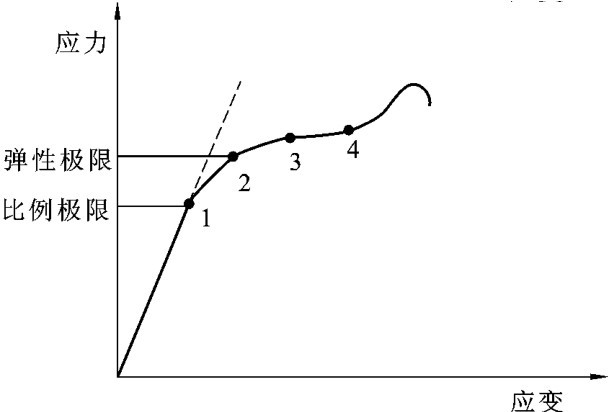 实验表明,如图1-24所示,在材料开始受力期间,材料是发生线弹性变形,这时固体的单向拉伸变形与所受的外力成正比,这就是胡克定律在材料变形中的应用,表述为:在应力低于比例极限的情况下,固体中的应力σ与应变ε成正比,公式表达为σ=Eε,式中E为常数,称为弹性模量。