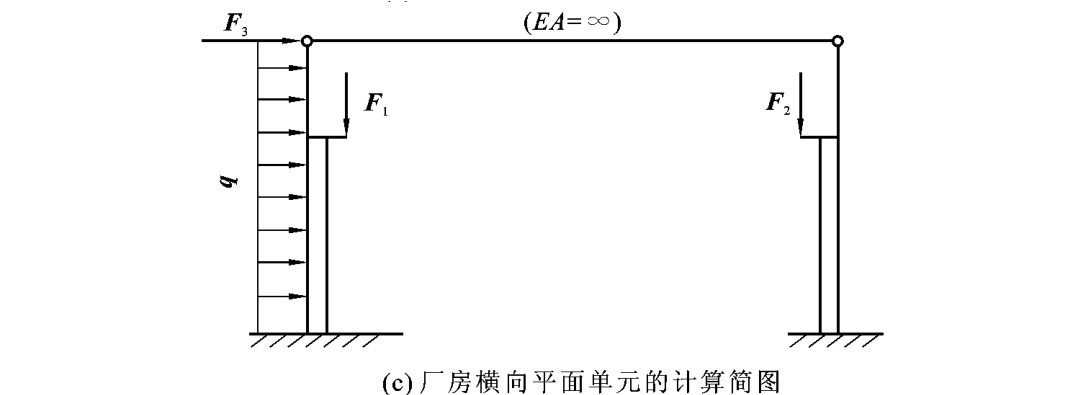 综上所述,即可得到厂房横向平面单元的计算简图,如图2-25(c)所示。