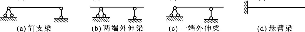 (2)外伸梁:该种梁的支座形式与简支梁相同,但梁的一端或两端会伸出支座之外,如图3-9(b)、(c)所示。