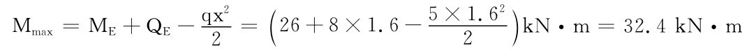,可得x=1.6m。最大弯矩为