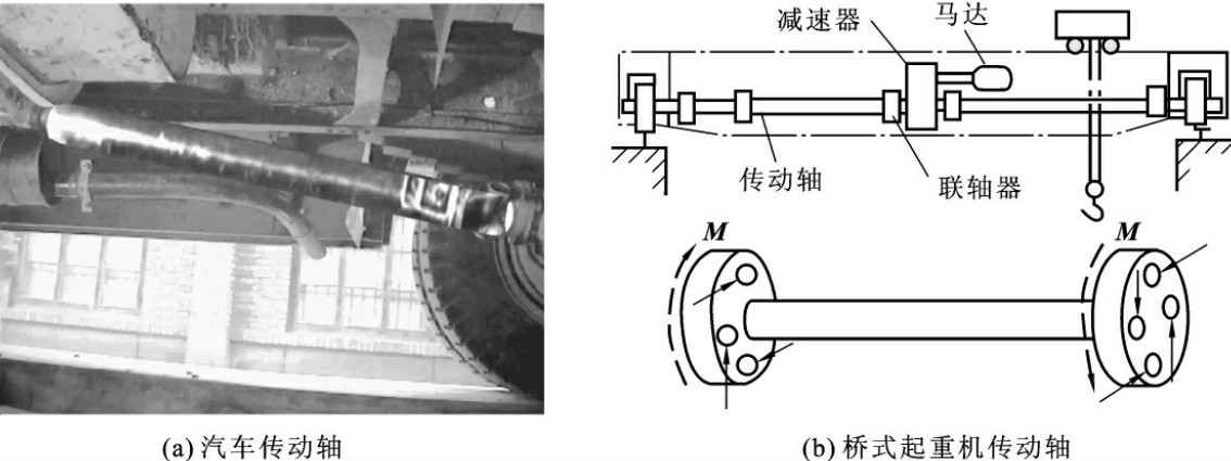 在工程实际中,有很多构件,如车床的光杆、汽车的传动轴、建筑工地的卷扬机轴等,这些构件都是圆截面的,都会发生扭转的现象,产生扭转变形,如图3-56所示。