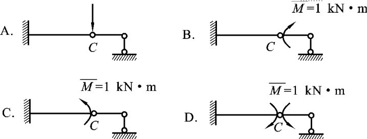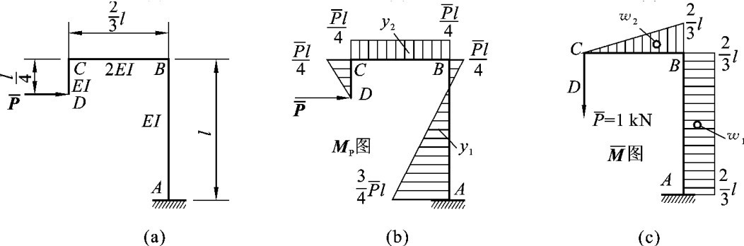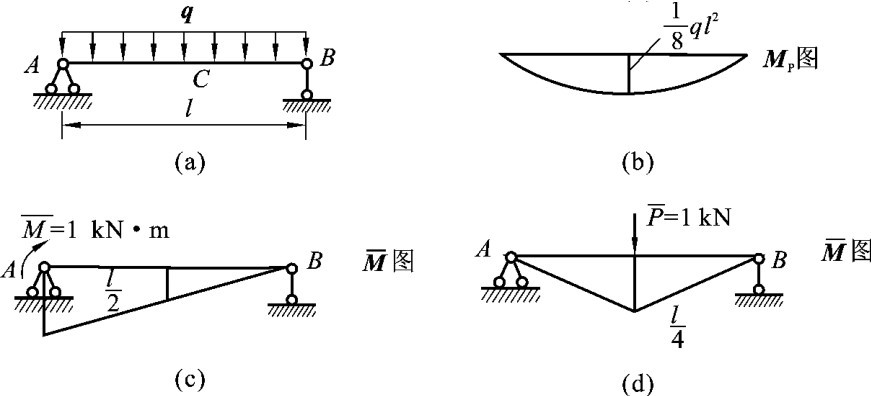 =1kN作用下的虚拟状态,并画出弯矩图,如图4-17(c)、(d)所示。