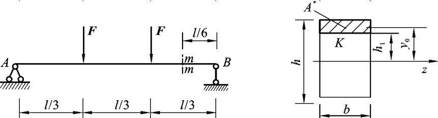 【例5-11】 矩形截面简支梁如图5-18所示。已知:l=3m,h=160mm,b=100mm,h1=40mm,F=3kN,求m—m截面上K点的切应力。